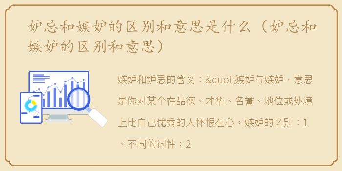 嫉妒指的是上面的意思,但里面似乎有仇恨。嫉妒包含嫉妒,所以比通常所说的嫉妒要好。因为,有嫉妒就会有行动,你赢了不要轻易放弃对方。当然,嫉妒中也有嫉妒。所以这两个词同而不同,意思相近,程度略有不同。