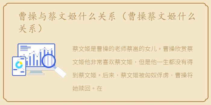 蔡文姬是曹操的老师蔡邕的女儿。曹操欣赏蔡文姬他非常喜欢蔡文姬,但是他一生都没有得到蔡文姬。后来,蔡文姬被匈奴俘虏,曹操将她赎回。在他救了蔡文姬之后,他没有他没有强迫蔡文姬和自己在一起,而是安排她嫁给了别人。