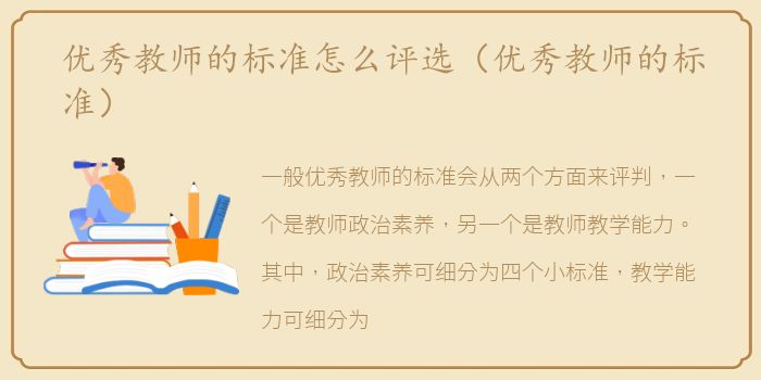 一般优秀教师的标准会从两个方面来评判,一个是教师政治素养,另一个是教师教学能力。其中,政治素养可细分为四个小标准,教学能力可细分为五个小标准。具体内容如下: