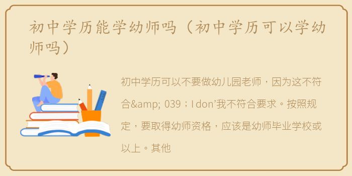 初中学历可以不要做幼儿园老师,因为这不符合&# 039;I don’我不符合要求。按照规定,要取得幼师资格,应该是幼师毕业学校或以上。其他中等专业学校毕业应视为不合格。