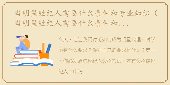 今天,让让我们讨论如何成为明星代理。对学历有什么要求?你对自己的要求是什么?
