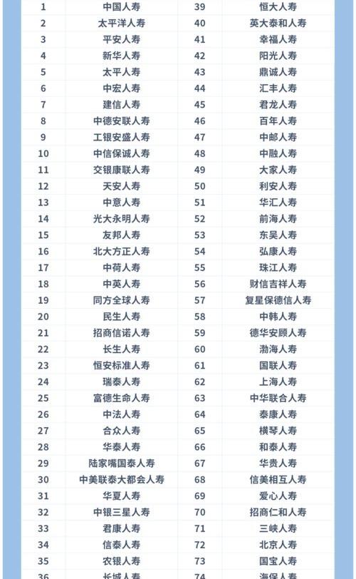 第三名:中国太平洋人寿保险股份有限公司中国排名第三美国大陆市场,而今年的亚洲排名也保持在亚洲第四位。