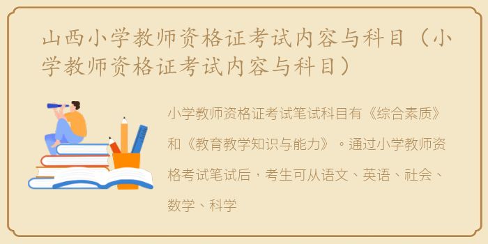 2.小学教师资格证笔试科目为《综合素质(小学)》和《教育教学知识与能力》;