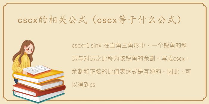 cscx=1/sinx .在直角三角形中,一个锐角的斜边与对边之比称为该锐角的余割。写成cscx。余割和正弦的比值表达式是互逆的。因此,可以得到cscx=1/sinx。