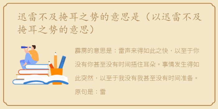 霹雳的意思是:雷声来得如此之快,以至于你没有你甚至没有时间捂住耳朵。事情发生得如此突然,以至于我没有我甚至没有时间准备。原句是:雷霆可以don’不要捂住你的耳朵,但是闪电可以。不要闭上眼睛。"