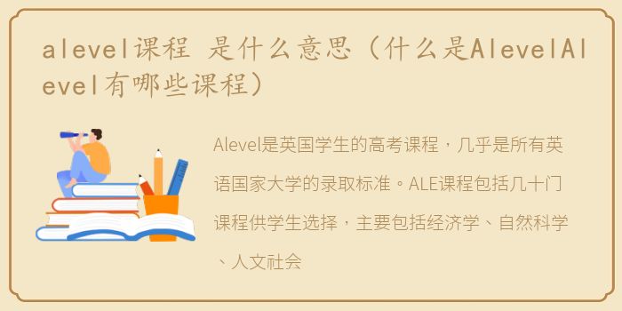 Alevel是英国学生的高考课程,几乎是所有英语国家大学的录取标准。ALE课程包括几十门课程供学生选择,主要包括经济学、自然科学、人文社会科学、数学与计算机科学、语言文学等等。