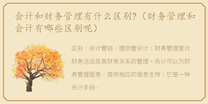 金融和会计是两个专业。简单来说,会计管钱,财务管会计。财务管理专业和会计专业差不多。一般比会计专业多学了高级财务管理、财务分析等数量有限的课程。财务管理专业除了数学等基础课,还有金融方面,管理方面,国际贸易的一些课程。财务管理专业的主要内容应该以财务分析为主,对公司有好处。财务和会计的区别: