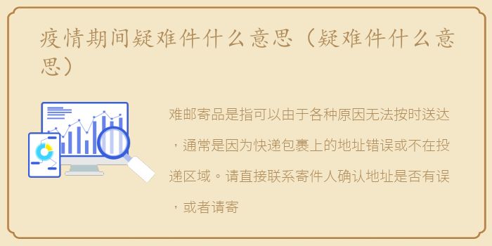 难邮寄品是指可以由于各种原因无法按时送达,通常是因为快递包裹上的地址错误或不在投递区域。请直接联系寄件人确认地址是否有误,或者请寄件人直接联系寄件人公司。