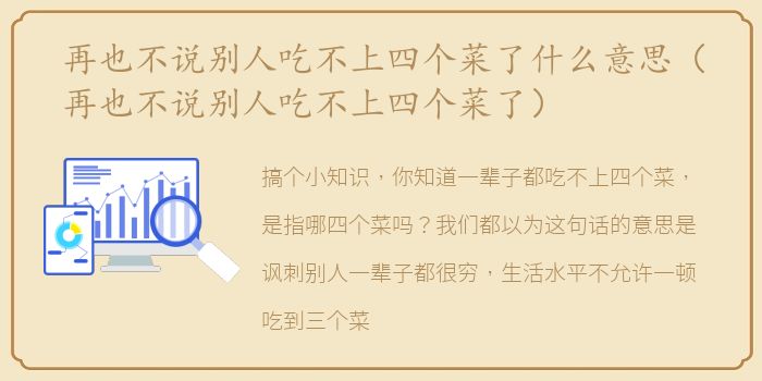 搞个小知识,你知道一辈子都吃不上四个菜,是指哪四个菜吗?我们都以为这句话的意思是讽刺别人一辈子都很穷,生活水平不允许一顿吃到三个菜以上。但其实这句话的意思可读了,这四个才分别是指厂家结婚菜牌子的满月菜、零食的分别菜,以及记电池的供菜。