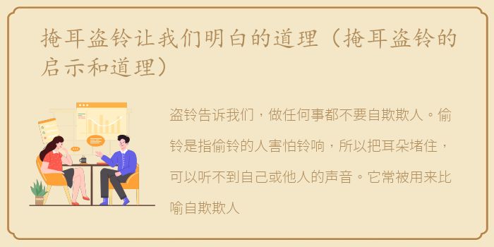 盗铃告诉我们,做任何事都不要自欺欺人。偷铃是指偷铃的人害怕铃响,所以把耳朵堵住,可以听不到自己或他人的声音。它常被用来比喻自欺欺人。虽然作弊的人可以暂时逃脱惩罚,但他们可以一辈子都脱不了干系。他们可以经不起时间的考验,最终会暴露出来。