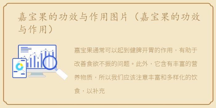 嘉宝果通常可以起到健脾开胃的作用,有助于改善食欲不振的问题。此外,它含有丰富的营养物质,所以我们应该注意丰富和多样化的饮食,以补充身体所需的应用。