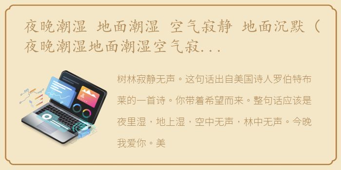 树林寂静无声。这句话出自美国诗人罗伯特布莱的一首诗。你带着希望而来。整句话应该是夜里湿,地上湿,空中无声,林中无声。今晚我爱你。