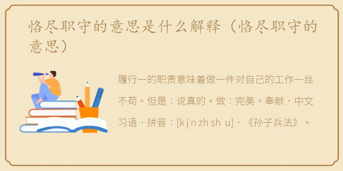 履行一的职责意味着做一件对自己的工作一丝不苟。但是:说真的。做:完美。奉献,中文习语,拼音:[k j n zh sh u],《孙子兵法》。