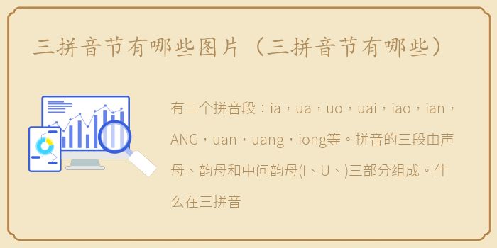 有三个拼音段:ia,ua,uo,uai,iao,ian,ANG,uan,uang,iong等。拼音的三段由声母、韵母和中间韵母(I、U、)三部分组成。