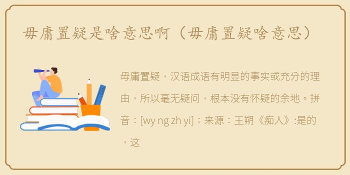 毋庸置疑,汉语成语有明显的事实或充分的理由,所以毫无疑问,根本没有怀疑的余地。拼音:[wy ng zh yi];来源:王朔《痴人》:是的,这是毫无疑问的!我相信她走的方向是对的。"
