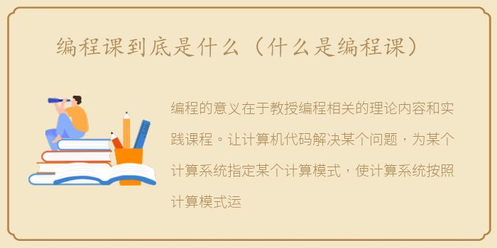 编程的意义在于教授编程相关的理论内容和实践课程。让计算机代码解决某个问题,为某个计算系统指定某个计算模式,使计算系统按照计算模式运行,最终得到相应结果的过程叫做编程。