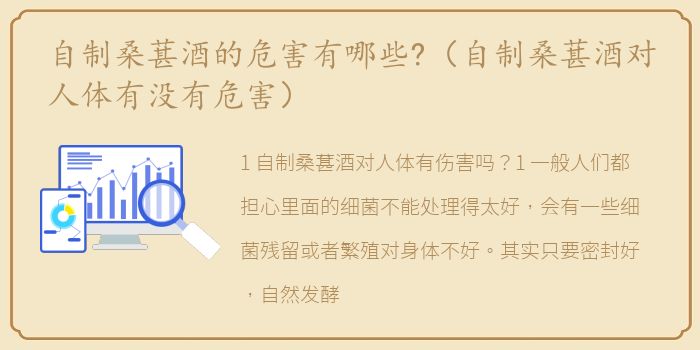 1.自制桑葚酒对人体有伤害吗?1.一般人们都担心里面的细菌不能处理得太好,会有一些细菌残留或者繁殖对身体不好。其实只要密封好,自然发酵就不会有这种担心。