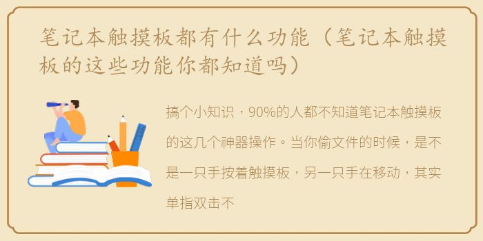 搞个小知识,90%的人都不知道笔记本触摸板的这几个神器操作。当你偷文件的时候,是不是一只手按着触摸板,另一只手在移动,其实单指双击不松开,就相当于长按鼠标左键,双指轻触相当于鼠标右键,双指上下滑动则相当于鼠标的滚轮。