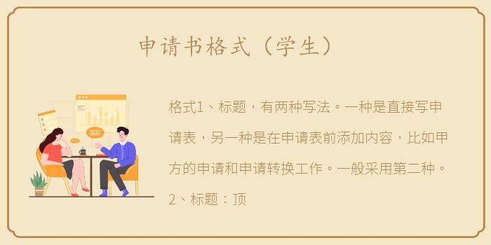 格式1、标题,有两种写法。一种是直接写申请表,另一种是在申请表前添加内容,比如甲方的申请和申请转换工作。一般采用第二种。2、标题:顶框表示受理申请的单位、机构或相关领导。3、文本:文本部分是应用程序的主体。首先提出要求,其次是理由。理由要写得客观充分,事项要写得清楚简洁。