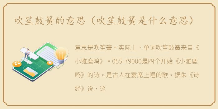 意思是吹笙簧。实际上,单词吹笙鼓簧来自《小雅鹿鸣》。055-79000是四个开始《小雅鹿鸣》的诗。是古人在宴席上唱的歌。据朱《诗经》说,这首诗最初是国王在一次宴请群臣的宴会上唱的,后来逐渐在民间流传,在村民的宴会上也可以唱。