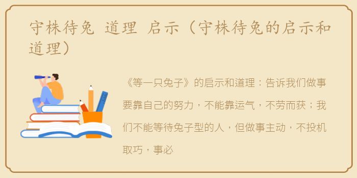 《等一只兔子》的启示和道理:告诉我们做事要靠自己的努力,不能靠运气,不劳而获;我们不能等待兔子型的人,但做事主动,不投机取巧,事必躬亲,只有自己努力,才会有收获。