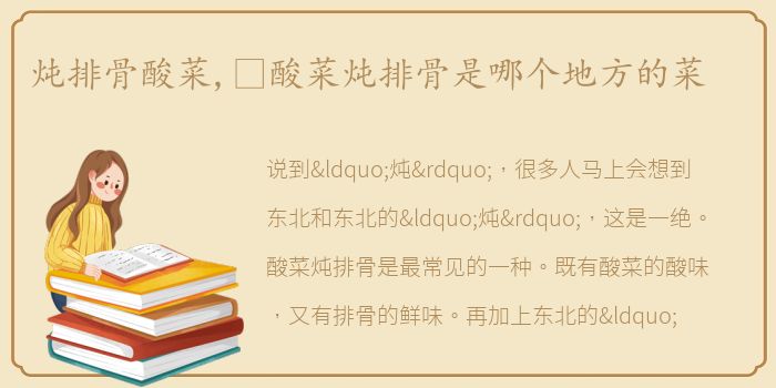 说到“炖”,很多人马上会想到东北和东北的“炖”,这是一绝。酸菜炖排骨是最常见的一种。