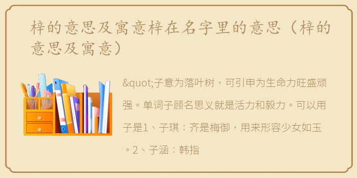"子意为落叶树,可引申为生命力旺盛顽强。单词子顾名思义就是活力和毅力。可以用子是1、子琪:齐是梅御,用来形容少女如玉。