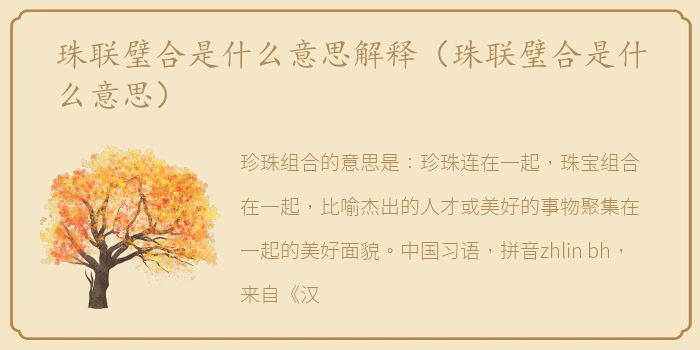 珍珠组合的意思是:珍珠连在一起,珠宝组合在一起,比喻杰出的人才或美好的事物聚集在一起的美好面貌。中国习语,拼音zhlin bh,来自《汉书律历志上》:日月相合,五星成行。"
