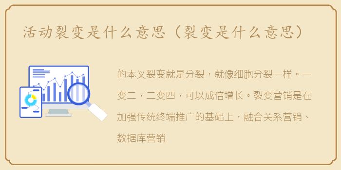 的本义裂变就是分裂,就像细胞分裂一样。一变二,二变四,可以成倍增长。裂变营销是在加强传统终端推广的基础上,融合关系营销、数据库营销、会议营销等新的营销方式和理念。这种裂变模式其实指的是终端市场的裂变。其核心内容是:市场不应该一开始就全面铺开,快速发展,而应该精耕细作,全力以赴,单项突破。