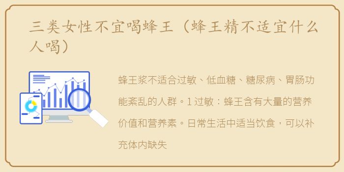 蜂王浆不适合过敏、低血糖、糖尿病、胃肠功能紊乱的人群。1.过敏:蜂王含有大量的营养价值和营养素。