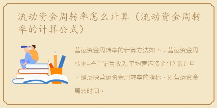 营运资金周转率的计算方法如下:营运资金周转率=产品销售收入/平均营运资金*12/累计月,是反映营运资金周转率的指标,即营运资金周转时间。销售收入不需要换算成全年,而是按照平均月份计算。
