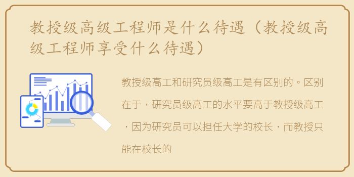 高级工程师对应的是教育方面的副教授,研究方面的副研究员,研究员级别的高级工程师。对于研究人员来说,教授级的高级工程师对应的是教育学的教授。