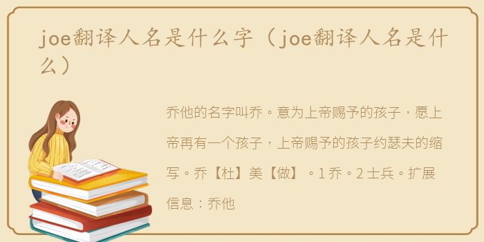乔他的名字叫乔。意为上帝赐予的孩子,愿上帝再有一个孩子,上帝赐予的孩子约瑟夫的缩写。乔【杜】美【做】。1.乔。2.士兵。