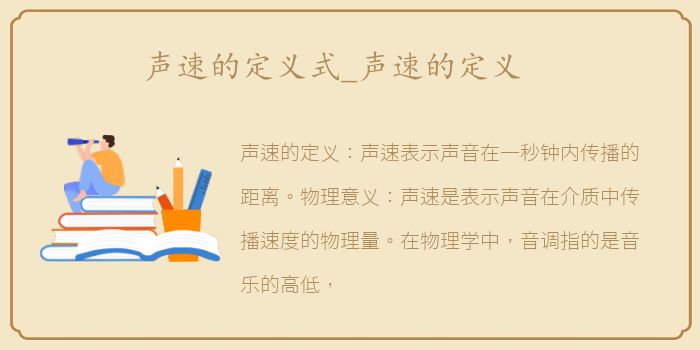 声速的定义:声速表示声音在一秒钟内传播的距离。物理意义:声速是表示声音在介质中传播速度的物理量。在物理学中,音调指的是音乐的高低,响度指的是声音的强弱,音色指的是声音的特性,要区分开来。