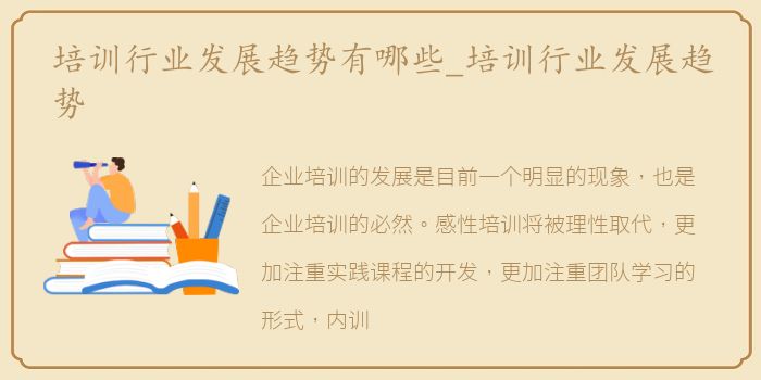 1、企业培训的发展是目前比较明显的现象,也是企业培训的一种必然。目前,即使企业更加重视培训管理等相关工作,培训效果也很可能不尽如人意。作为企业管理者,我们需要关注当前企业培训的发展趋势,及时做出改变和调整。为了更好的开展企业培训,实现提高员工专业技能的既定目标,进而促进企业的发展。目前,企业培训的发展趋势主要包括以下几个方面: