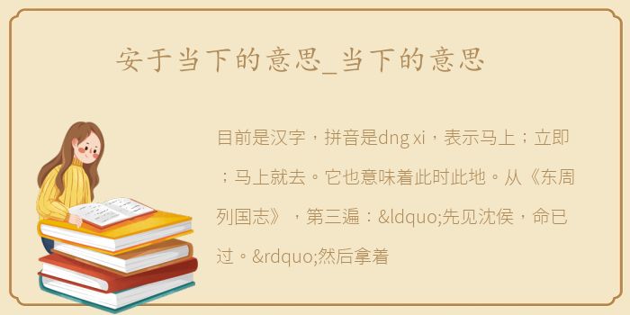 目前是汉字,拼音是dng xi,表示马上;立即;马上就去。它也意味着此时此地。从《东周列国志》,第三遍:“先见沈侯,命已过。”然后拿着皇冠,告诉圣殿,也就是王座,做和平之王。"