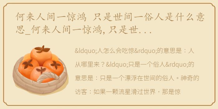 “人怎么会吃惊”的意思是:人从哪里来?“只是一个俗人”的意思是:只是一个漂浮在世间的俗人。神奇的访客:如果一颗流星滑过世界,那是惊鸿一瞥,却在人间闪耀。我是屋檐下三寸雪,你是惊喜。