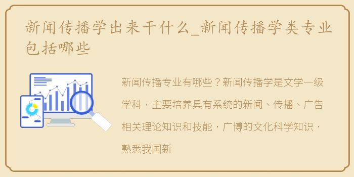 新闻传播学是文学一级学科,主要培养与新闻、传播、广告相关的系统理论知识和技能,广泛的文化科学知识,熟悉我国新闻宣传政策法规。能在广播电视、新闻、出版宣传部门、网络传播、广告部门、广告公司、市场调研与信息咨询行业、企事业单位工作的高级复合型专业人才,如编辑、记者、节目主持人、广告管理、广告策划创意与设计、营销策划与市场调研分析、媒体策划、信息编辑、内容设计与制作。