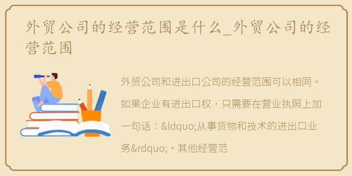 外贸公司和进出口公司的经营范围可以相同。如果企业有进出口权,只需要在营业执照上加一句话:“从事货物和技术的进出口业务”。