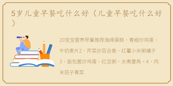 20宝宝营养早餐推荐海绵蛋糕、青椒炒鸡蛋、牛奶麦片2、芹菜炒百合卷、红薯小米粥橘子3、面包菌炒鸡蛋、红豆粥、水煮菱角。4、肉末茄子青菜面干果牛奶。