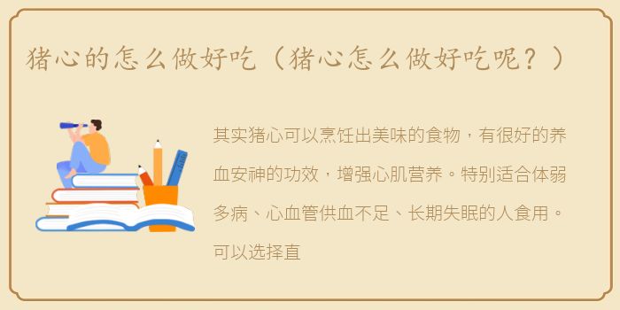 可以选择直接炖,但是要注意去腥。一、猪心炖原料:猪心1颗,鲜人参2根,枸杞子10g,姜片2片,矿泉水0.5l。