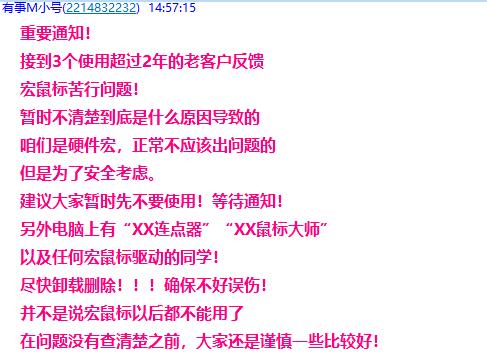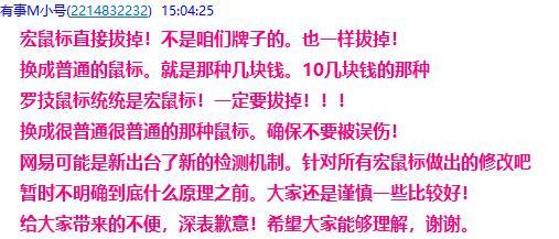 某网友透露,自己的五开号由于使用宏鼠标原因已被苦行,群里也有人进了苦行!