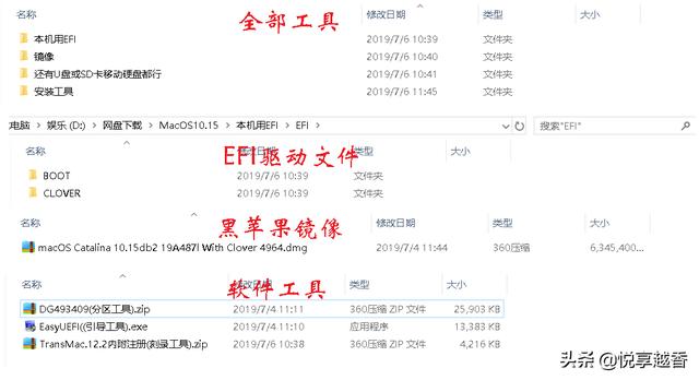 注:EFI只有实机安装才能收集,网上有流出的旧版资源,文件不全且年久失修,不保证适合新系统,建议关注微信公众号 悦享软件 回复 黑苹果 获取合集且可以永久更新。
