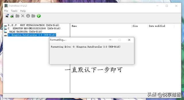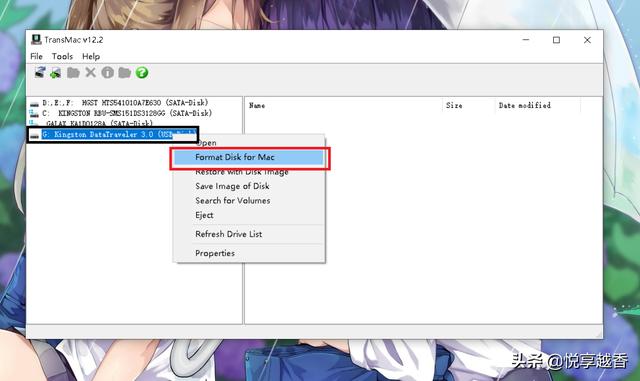 4.在软件窗口的左栏找你的U盘。用鼠标右键单击U盘,然后单击“Format Disk for Mac”(这将删除U盘上的所有文件,并为MacOS做好准备);一路默认下一步;