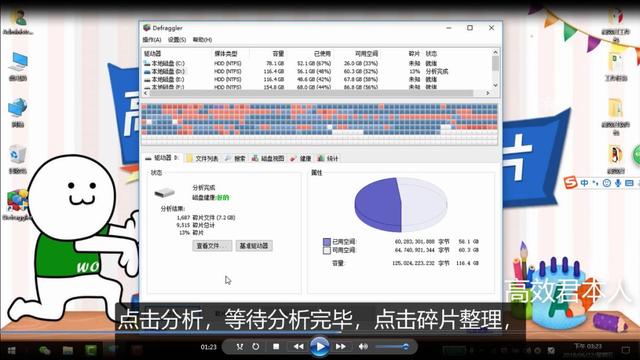 点击分析,等待分析完毕,点击碎片整理,