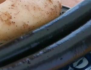 大家好,今天用茄子和土豆来做好吃的。首先把土豆去皮,然后切片,尽量切的薄一点,这样比较容易熟,装入盘中,再放入锅中用大火蒸15分钟,再准备一把小葱,切成葱花,装入碗中备用。