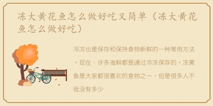 冻黄鱼是大家都很喜欢的食物之一,但是很多人不我没有多少烹饪技巧,所以他们做的菜味道一般。其实冻黄鱼想好吃,所以学习一些技能是可以的。