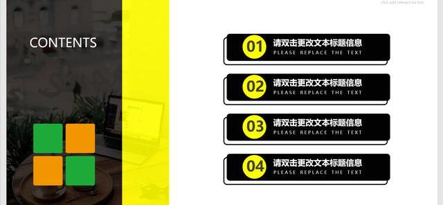 4、目录页。页面是整个PPT中不可或缺也是最重要的部分,往往以图文并茂的页面形式传达。