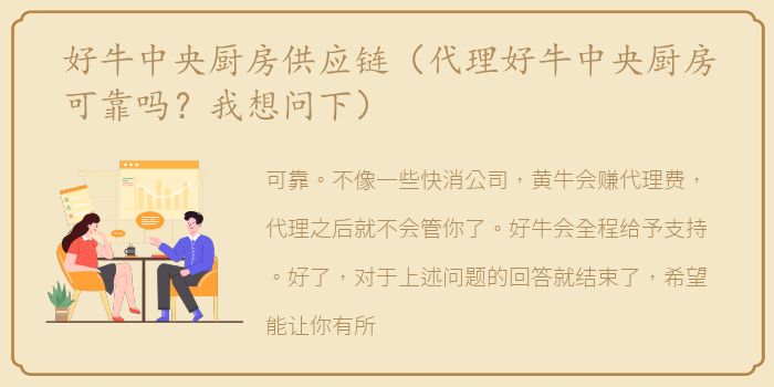 欢迎您来到125生活网,我是小二,许多人对这个问题还不是很清楚,以下是我对好牛中央厨房供应链,代理好牛中央厨房可靠吗?我想问下精心的整理,预计阅读30秒。