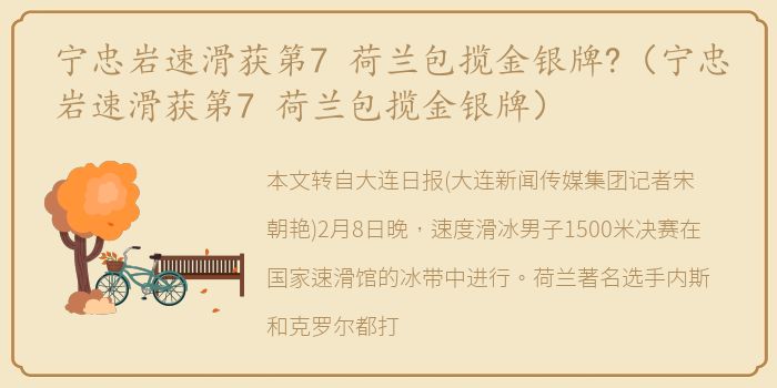 (大连新闻传媒集团记者宋朝艳)2月8日晚,速度滑冰男子1500米决赛在国家速滑馆的冰带中进行。荷兰著名选手内斯和克罗尔都打破了奥运纪录。内斯以1分43秒21获得金牌,克罗尔获得亚军,韩国选手金玟植获得铜牌。中国的宁忠言以1分45秒28的成绩滑出第14组,获得第7名。他的队友王昊天和连分别获得第20名和第27名。